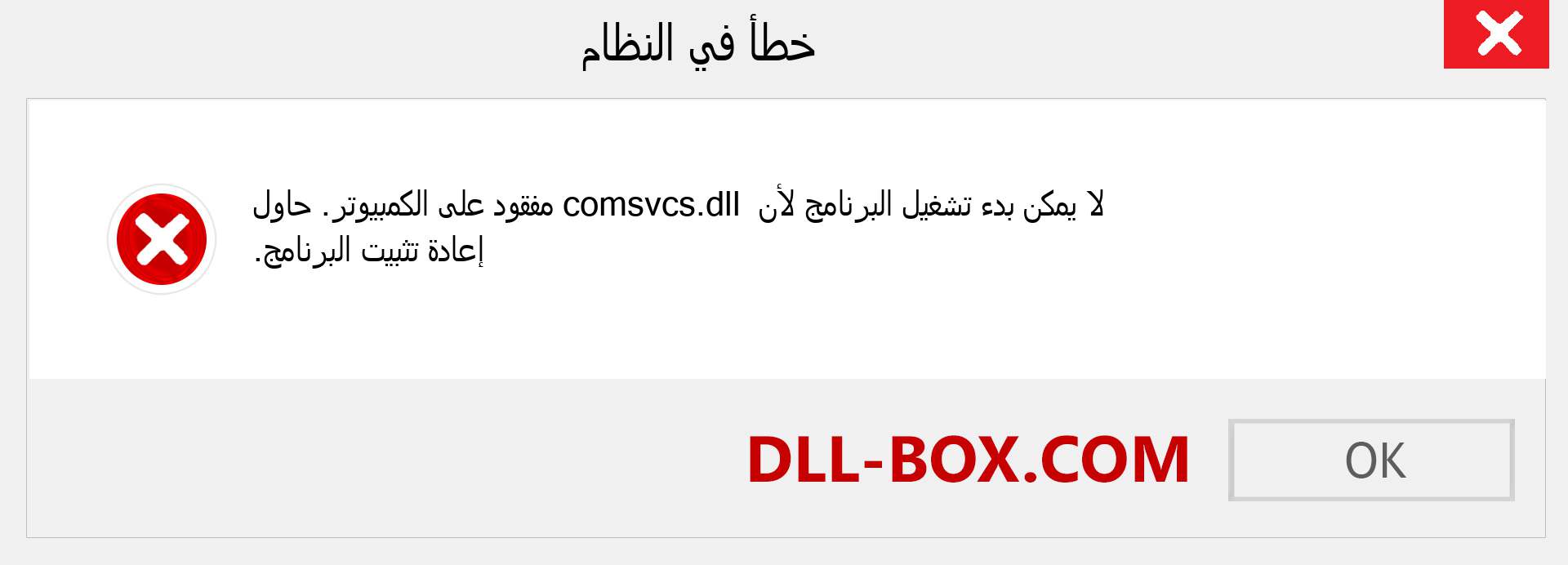 1. لا يمكن بدء تشغيل البرنامج لأن comsvcs.dll مفقود من جهاز الكمبيوتر الخاص بك. الرجاء إعادة تحميل البرنامج \ التطبيق لعلاج هذه المشكلة.